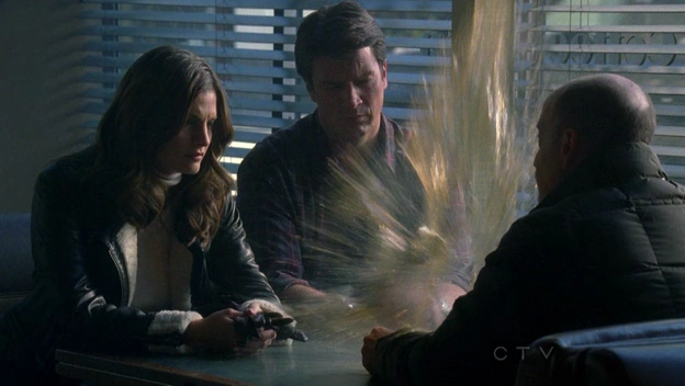 Simmons was soon found dead, and his wounds indicate he was slowly tortured before his death. When the bullet that killed him is matched to a weapon registered to Beckett, an internal affairs task force arrives at the 12th to arrest her. But Beckett was tipped off by her friend Lanie, and fled before the task force could grab her.